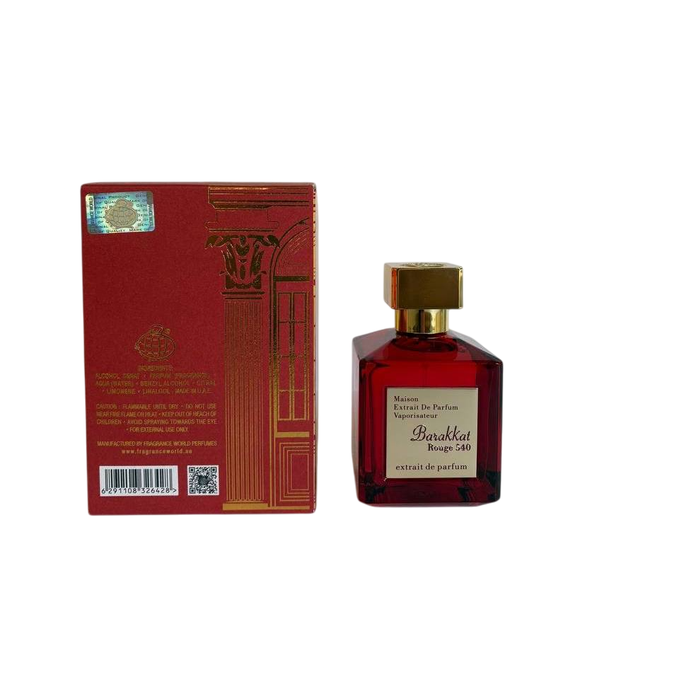 عطر زنانه مردانه باراکات رژ 540 اکستریت Fragrance World در گروه بویایی کهربایی عودی می باشند.
